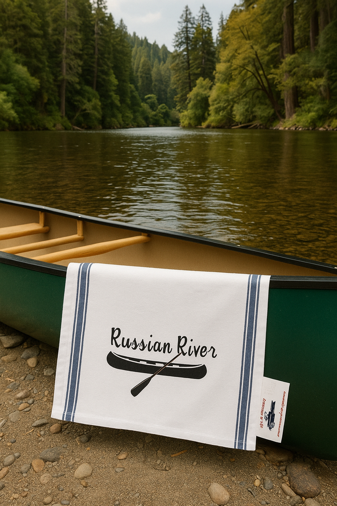 Capture the laid-back spirit of Sonoma County’s beloved river with this Russian River tea towel by Luma Vintage. Featuring a simple canoe and paddle design, it evokes sunny days spent floating under the redwoods and evenings gathered by the water.